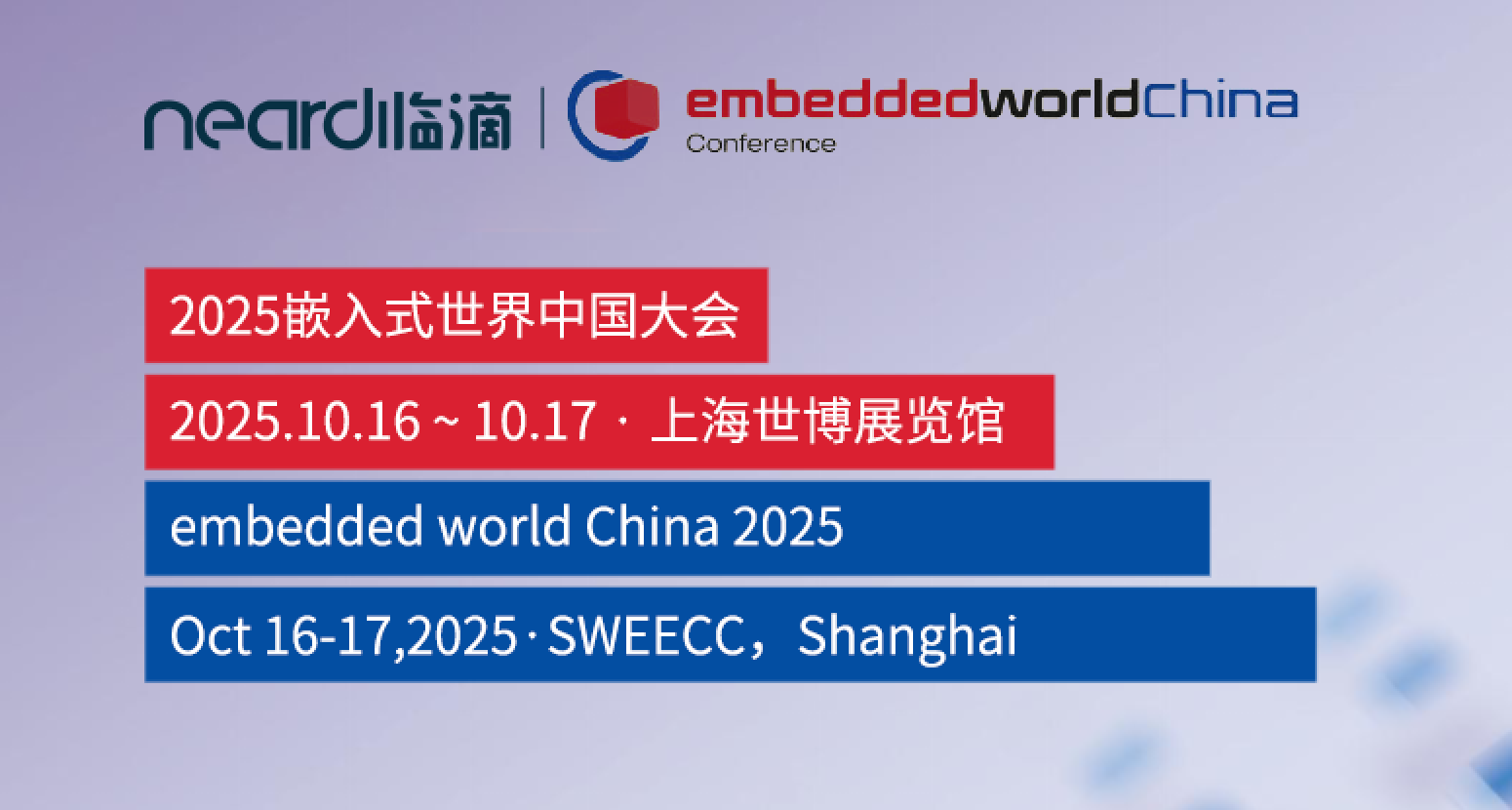 在万物互联、边缘智能快速渗透的时代,嵌入式技术正成为推动未来产业升级的核心引擎。作为智能硬件与边缘计算平台提供商,Neardi临滴将携智能硬件产品与应用解决方案亮相嵌入式世界中国大会(embedded world China 2025),诚邀你莅临现场,共探行业风向、共话未来趋势。